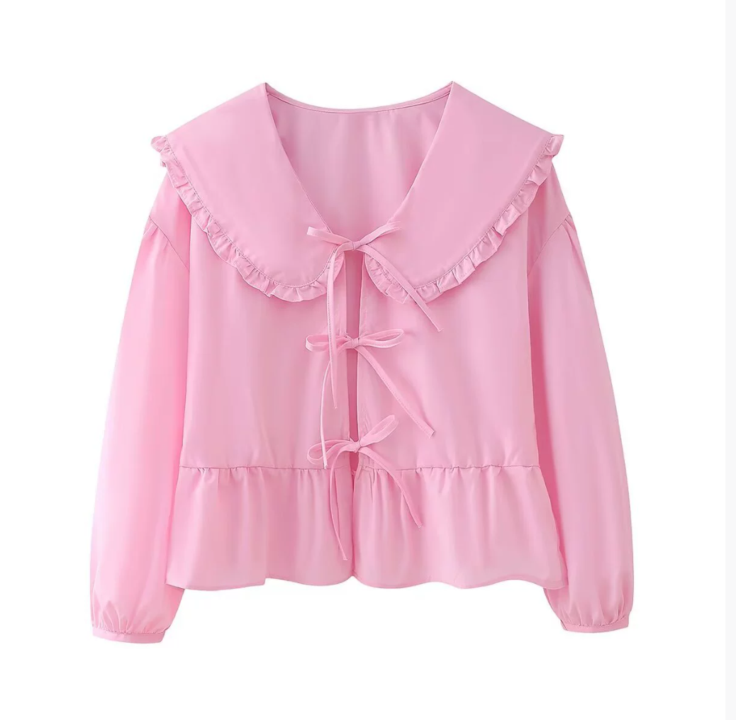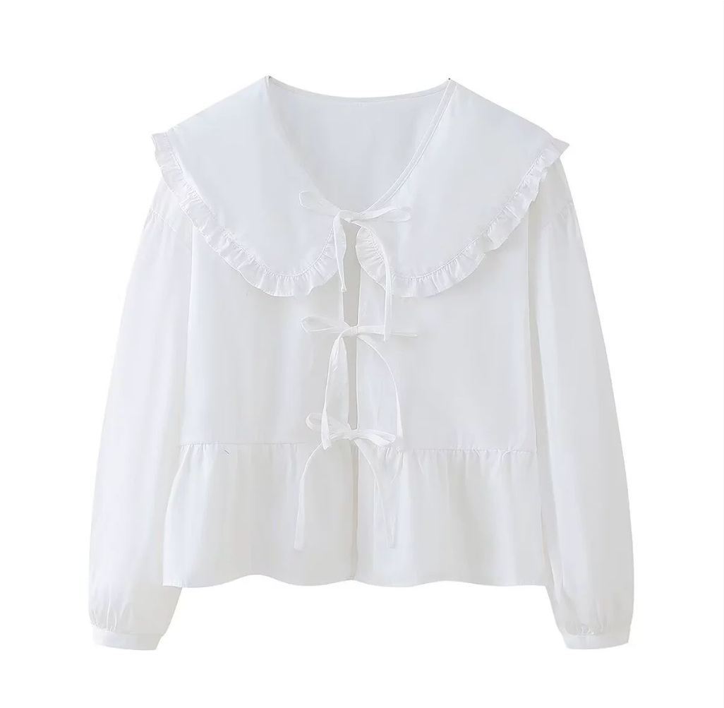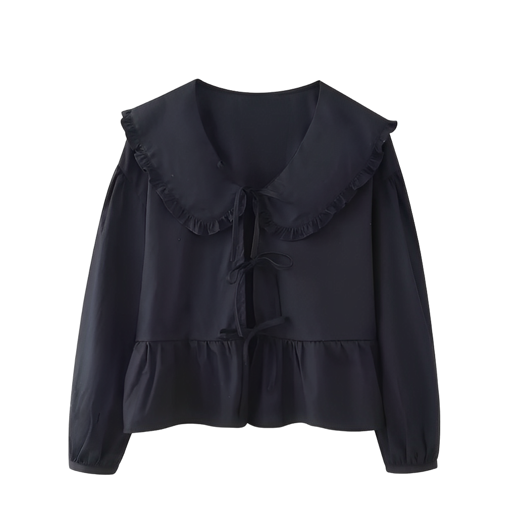 Meet Annie™ – a timeless and elegant blouse in deep black that combines romantic vintage charm with modern sophistication. The decorative collar with ruffle trim and the beautiful bows at the front create a feminine silhouette that makes the blouse an obvious statement, whether it's everyday, dinner or a special evening.