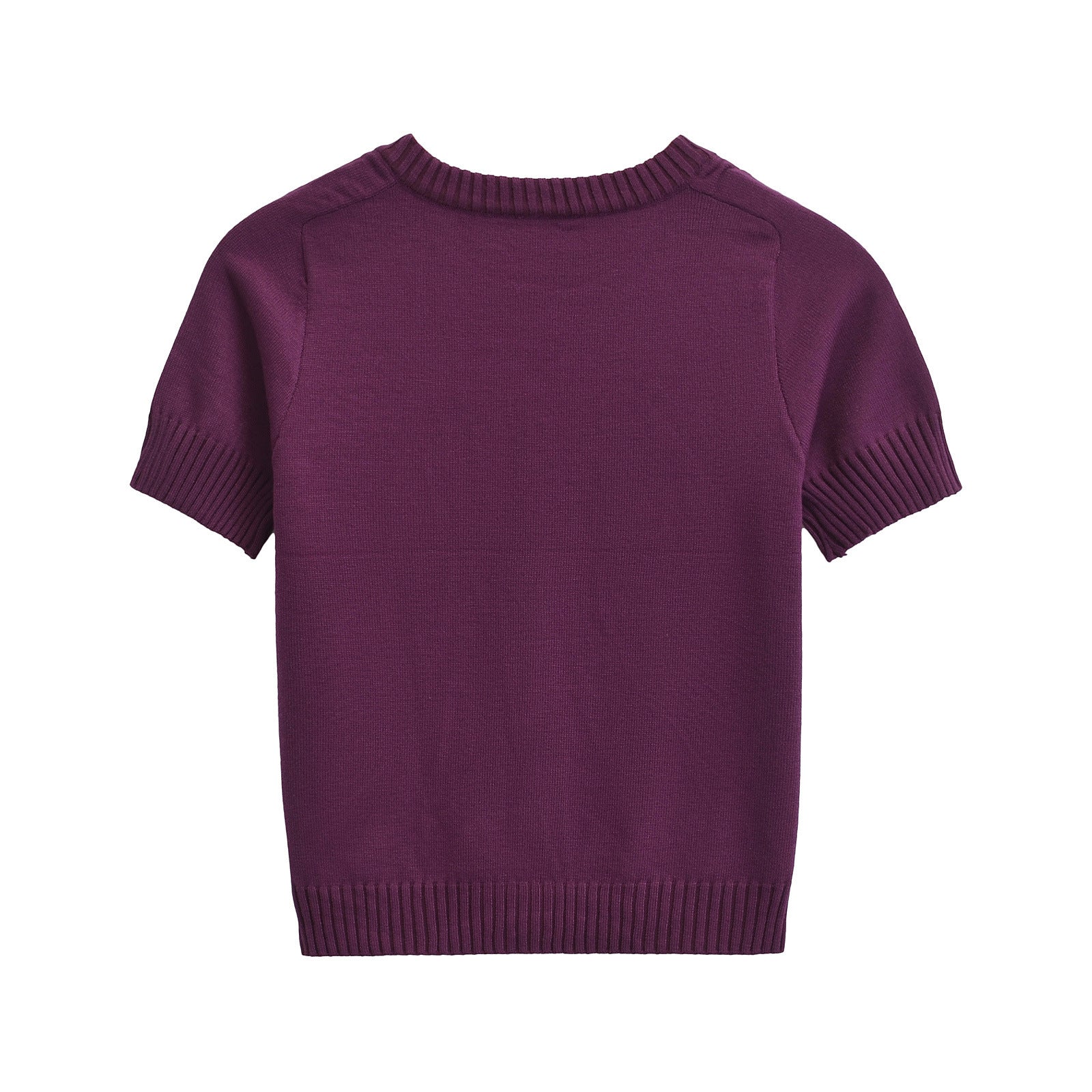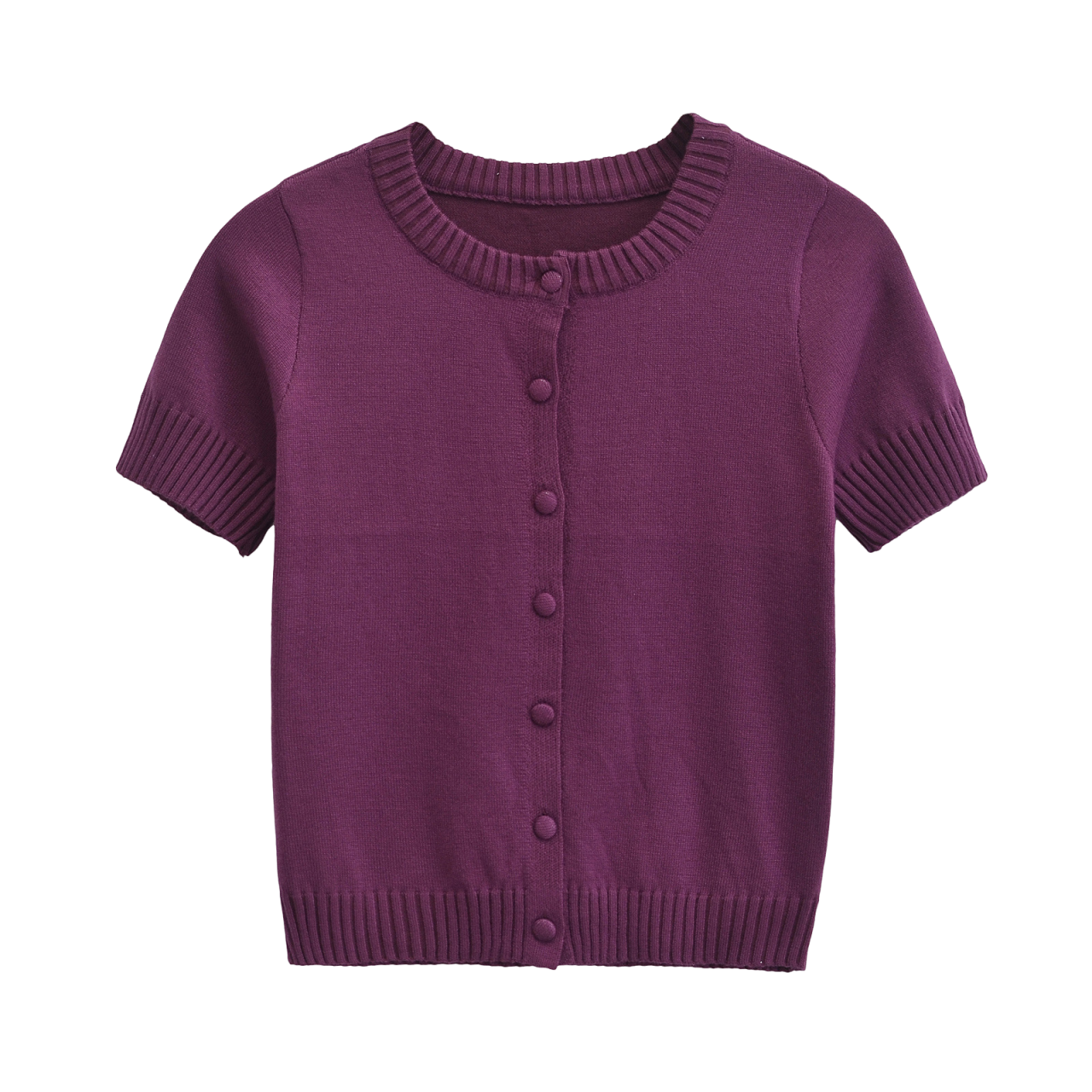 Lila Elegant Kortärmad Kofta med Knappdetaljer