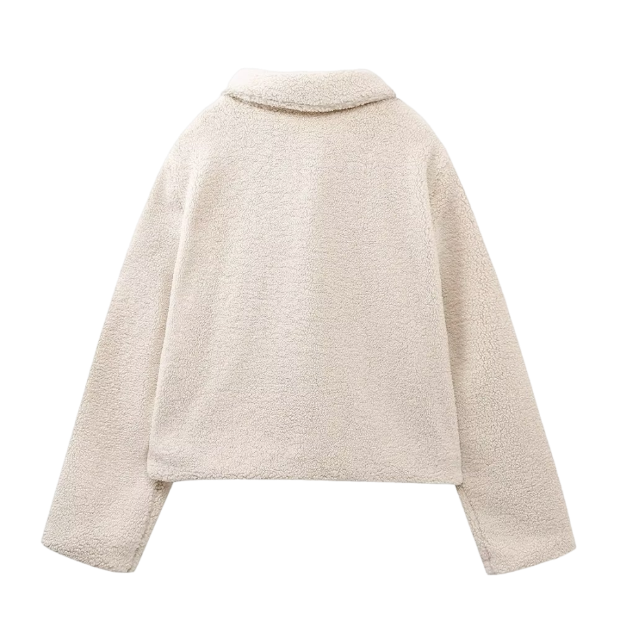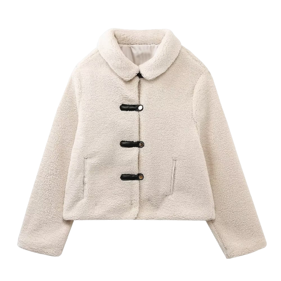Isabella™ är en drömmigt mjuk teddyjacka med unika knappliknande detaljer och en krage som förhöjer looken. Skapad för att hålla dig varm och stilfull under kyliga dagar – en perfekt kombination av mys och mode.