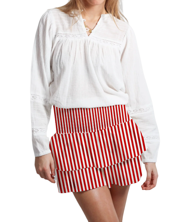Chloe™ is the skirt that captures the heart – sweet, playful and feminine in every detail. With its red striped pattern and double layers of ruffles, it is the perfect mix of romance and summery charm. The smocked waist provides both comfort and a flattering silhouette, while the lightweight fabric makes it ideal for warm days.
