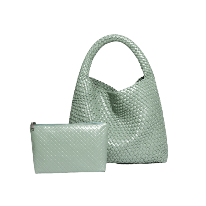 Luna™ - Flätad Axelväska & Necessär ljusgrön